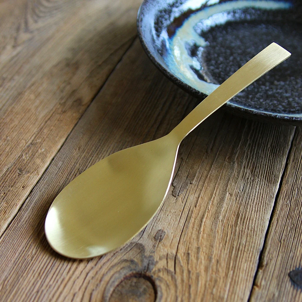 Dieser wunderschöne und handgefertigte Messinglöffel mit mattem Finish eignet sich perfekt zum anrichten von Salaten und anderen Gerichten.