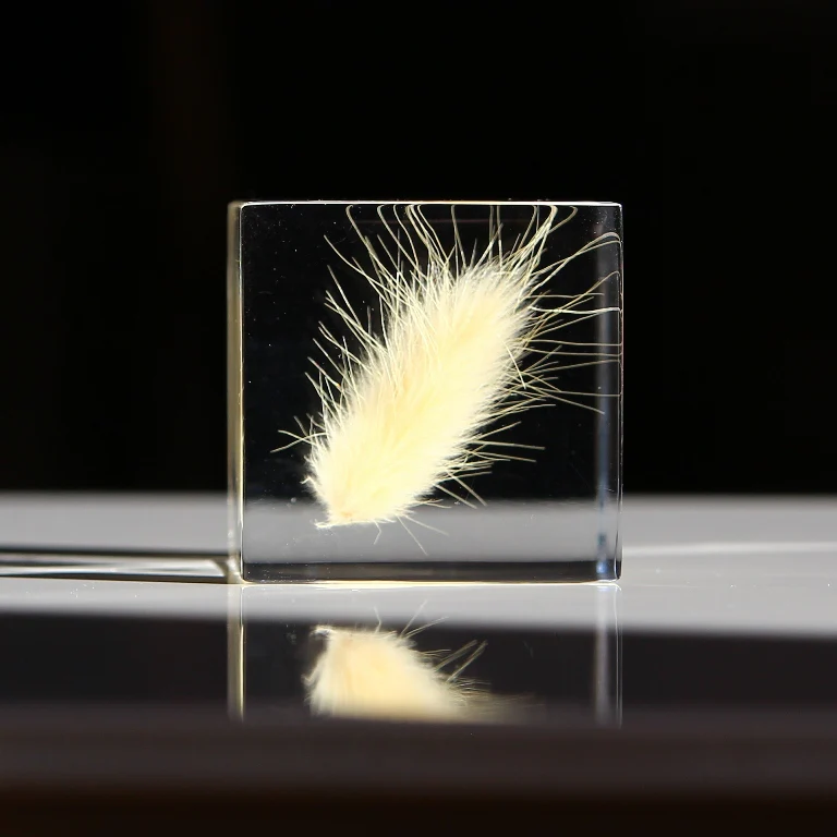 Die Pflanzen stammen aus der Natur und variieren daher in Größe, Farbe und Form. Jeder Würfel wird sorgfältig von Hand gefertigt, während des Produktionsprozesses können jedoch sehr feine Luftblasen oder pulverähnliche Materialien der Pflanze innerhalb des Würfels auftreten.