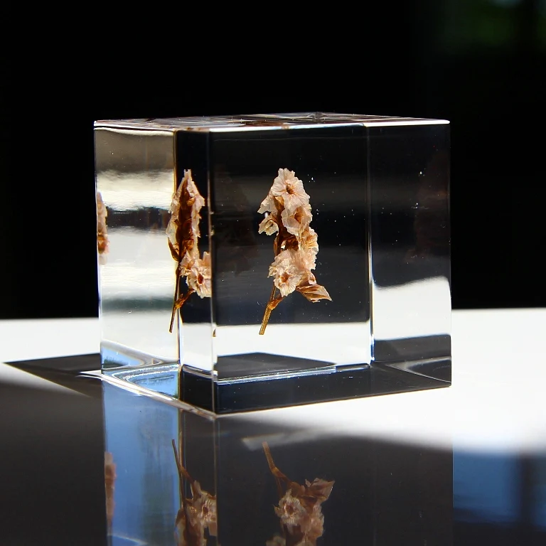 Die Pflanzen stammen aus der Natur und variieren daher in Größe, Farbe und Form. Jeder Würfel wird sorgfältig von Hand gefertigt, während des Produktionsprozesses können jedoch sehr feine Luftblasen oder pulverähnliche Materialien der Pflanze innerhalb des Würfels auftreten.