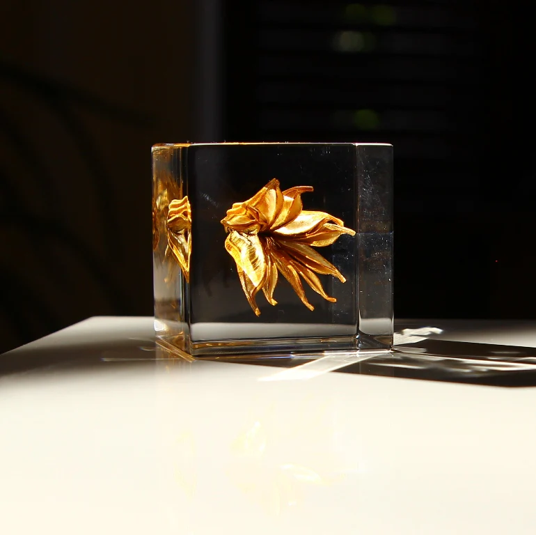 Jeder einzelne Würfel ist handgefertigt und benötigt viel Zeit und Mühe. Ein kleines Universum in einem kleinen transparenten Würfel.